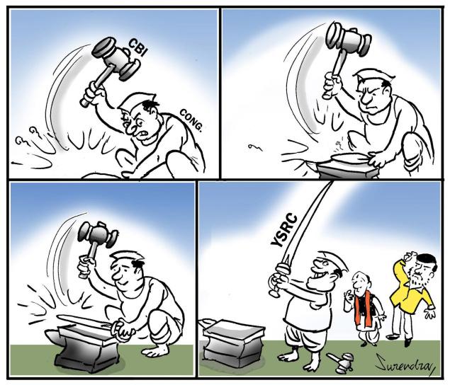 Published సెప్టెంబర్ 25, 2013 at 635 × 544 in సి.బి.ఐ సుత్తితో బాది సానపెడితే, ఆ కత్తే వైకాపా -కార్టూన్