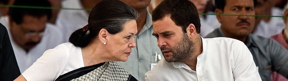 Congress Party president and chairperson of the United Progressive Alliance (UPA), Sonia Gandhi (L), talks to son Rahul Gandhi (R) during a memorial ceremony for slain former Indian prime minister, husband and father, Rajiv Gandhi, on his 21st death anniversary in New Delhi on May 21, 2012. Rajiv Gandhi was assassinated during electoral campaigning, allegedly by Liberation Tigers of Tamil Eelam (LTTE) rebel separatists, in the town of Sriperumpudur in the southern state of Tamil Nadu on May 21, 1991. AFP PHOTO / Prakash SINGH