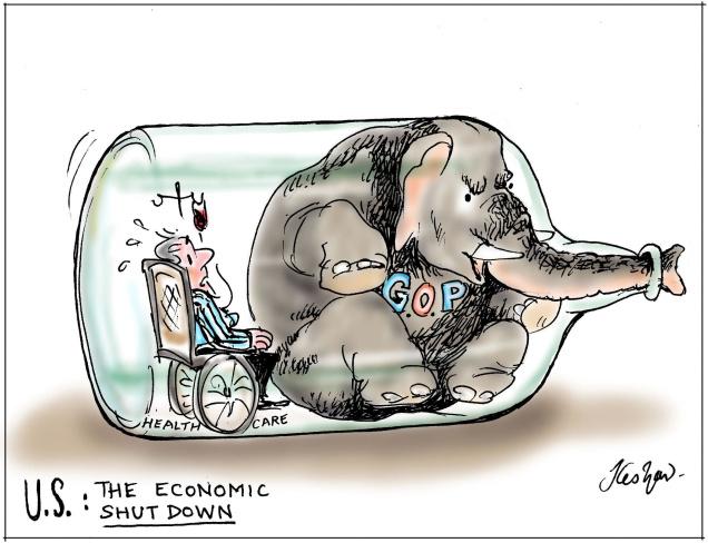 Published అక్టోబర్ 04, 2013 at 636 × 488 in ఒబామా కేర్ – అమెరికా మూసివేత -కార్టూన్