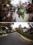హరికేన్ శాండి ధాటికి దెబ్బతిన్న ఇళ్ళు, కాలనీలు సాయం కోసం ఎదురుచూస్తున్న ఫోటోలు, ప్రభుత్వం తమను పట్టించుకోవాలని నిరసన తెలియజేస్తున్న ఫోటోలు, ఒకప్పుడు ఇళ్ళు కలిగి ఉండి తుఫాను లో తుడుచుకు పోయిన తమ రియల్ ప్రాపర్టీలో నిలబడ్డ జంటలు, పుంర్నిర్మాణానికి నోచుకొన్న చోట్ల తుఫానుకు ముందు-తర్వాత తీసిన ఫోటోలు కింద చూడవచ్చు. ఈ ఫోటోలను బోస్టన్ గ్లోబ్, హఫింగ్టన్ పోస్ట్ తదితర పత్రికలు అందించాయి.