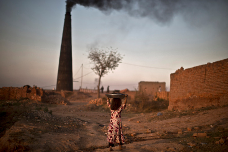 Nov. 21, 2013. Following her daily work with her parents at a brick factory, Pakistani Nagina Mohammed, 7, walks back to her home carrying coal over her head, that she collected to be used for heating and cooking, on the outskirts of Islamabad, Pakistan.