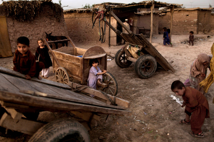 Afghan refugee children play around wooden carts left in a poor neighborhood on the outskirts of Islamabad, Pakistan, Thursday, April 11, 2013. Pakistan hosts over 1.6 million registered Afghans, the largest and most protracted refugee population in the world, according to the U.N. refugee agency. (AP Photo/Muhammed Muheisen)