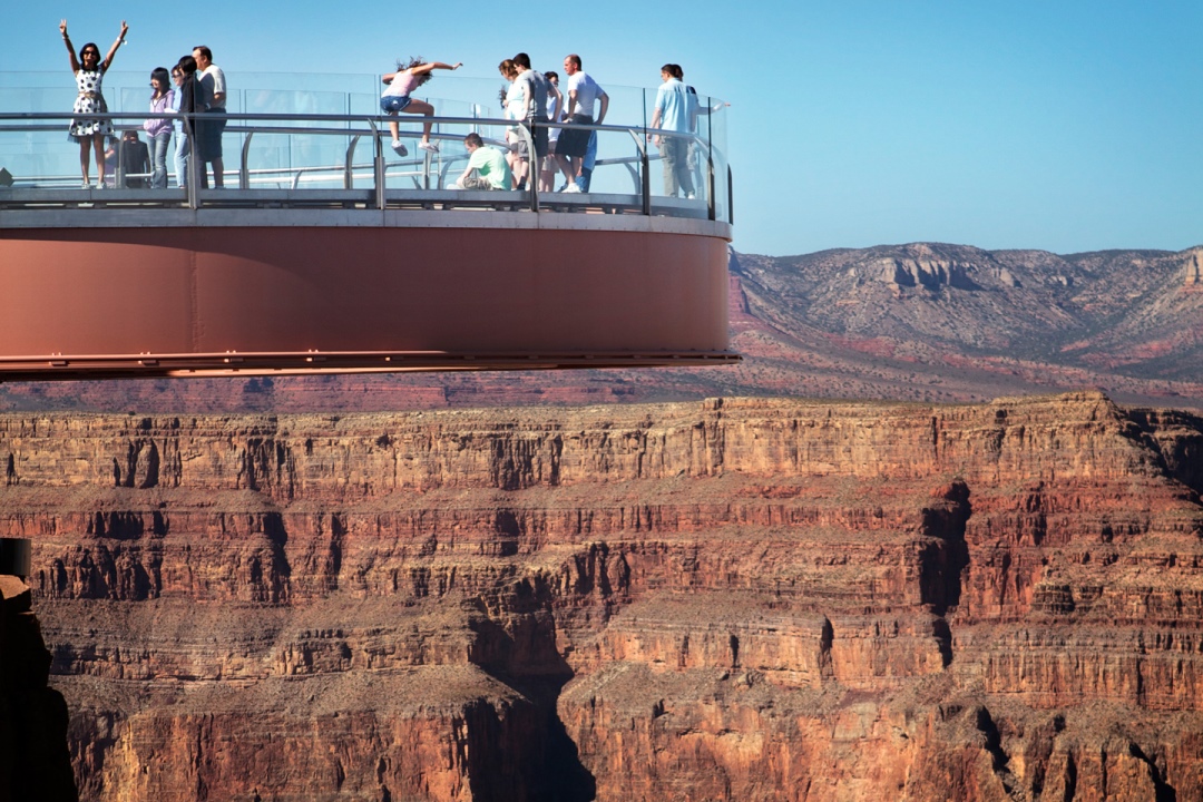Tourists at the Grand Canyon Skywalk. ..Recreation on the Colorado River is a very important revenue generator for the American south west.