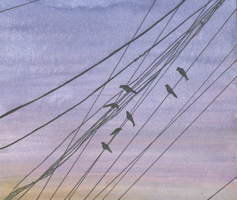 Birds on wires -pen and ink 03