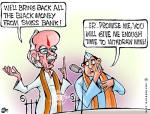 లెక్కకు రాని డబ్బు బైటికి రావాలంటే తాబేలు వీపుకు కర్ర కట్టడం కాదు, ఆ కర్రతో దాని వీపు బద్దలు కొట్టాల్సిందే అని కార్టూనిస్టు చెప్పదలిచినట్లు కనిపిస్తోంది. క్యారట్ కోసం తాబేలు ఎంత దూరం ‘తాబేలు నడక’ నడిచినా ఆ డబ్బు అటూ ఇటూ తిరుగుతుందే గాని బైటికి రాదని కూడా కార్టూనిస్టు సూచిస్తున్నారు.