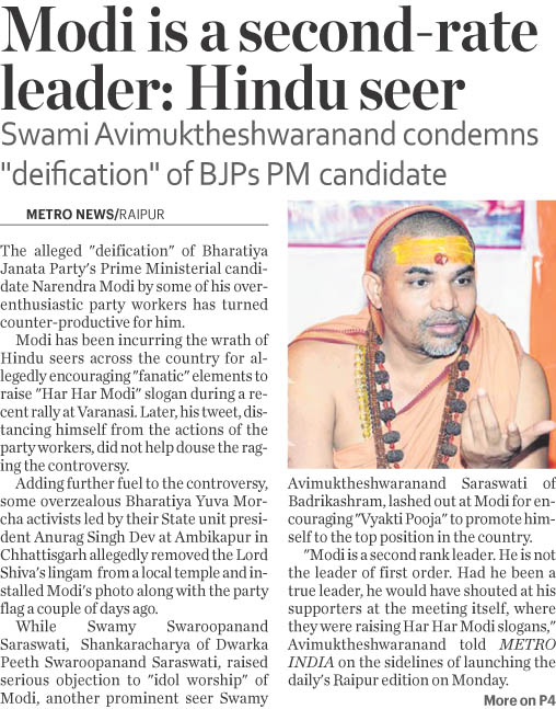 Published మార్చి 29, 2014 at 508 × 647 in మోడి సెకండ్ రేట్ లీడర్ -హిందూ స్వాములు