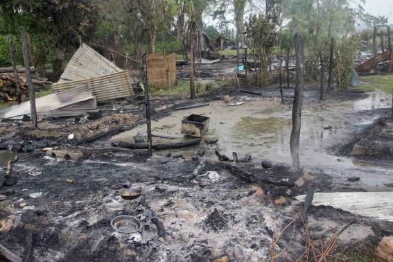 A view of the houses that were burnt during the attacks is pictured at Baksa district in Assam May 3, 2014. REUTERS/Stringer