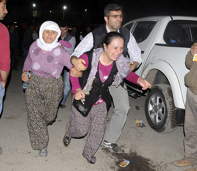 Relatives of miners trapped in a coal mine react as they wait in front of the site in Soma, a district in Turkey’s western province of Manisa May 13, 2014. An explosion and fire in the coal mine in western Turkey killed at least seventeen miners on Tuesday and may have trapped as many as 300 more, officials said. REUTERS/Depo Photos (TURKEY – Tags: DISASTER ENERGY TPX IMAGES OF THE DAY) ATTENTION EDITORS – FOR EDITORIAL USE ONLY. NOT FOR SALE FOR MARKETING OR ADVERTISING CAMPAIGNS. THIS PICTURE WAS PROVIDED BY A THIRD PARTY. REUTERS IS UNABLE TO INDEPENDENTLY VERIFY THE AUTHENTICITY, CONTENT, LOCATION OR DATE OF THIS IMAGE. THIS PICTURE IS DISTRIBUTED EXACTLY AS RECEIVED BY REUTERS, AS A SERVICE TO CLIENTS – RTR3P01D