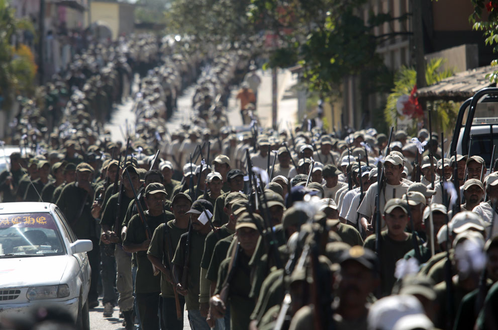 02 Self Defence squad march on roads in Ayutla, Mexico