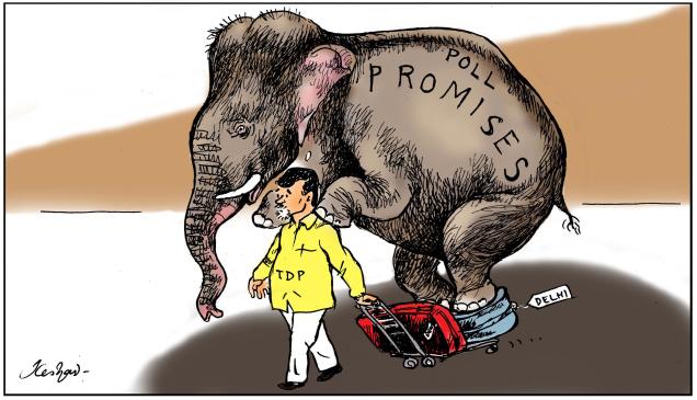 Published జూన్ 14, 2014 at 636 × 365 in మోడీ పైనే బాబు ఎన్నికల హామీల భారం! -కార్టూన్