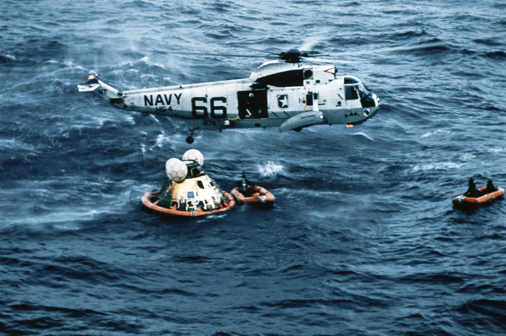 20 Apollo 11 crew splashdown on July 24, 1969