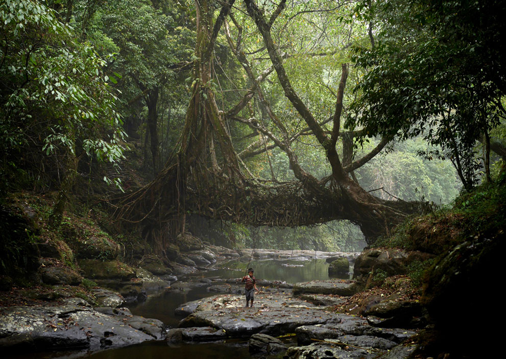 18 An ancient root bridge in Mawsynram