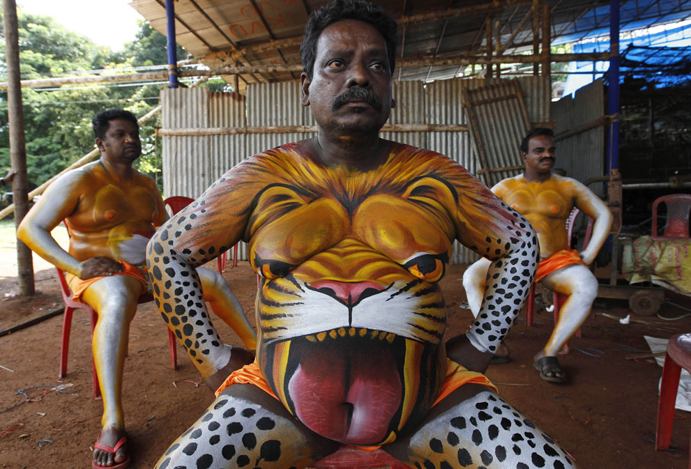 15 Tiger dancers rest in Thissur, Kerala