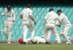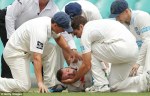 ఫిల్ హ్యూస్ బంతి తాకగానే మొదట మోకాళ్లపై చేతులు ఉంచుకుని ముందుకు వంగాడు. విశ్రాంతి తీసుకుంటున్నాడని భావించిన హ్యూస్ ఇతర ఆటగాళ్లు, ప్రేక్షకులు చూస్తుండగానే అలాగే ముందుకు పడిపోయాడు. ముఖాన్ని నేలకు తాకిస్తూ బోర్లా పడిన హ్యూస్ వద్దకు ఇతర ఆటగాళ్లు పరుగున వచ్చి తట్టిన్నప్పటికీ అతనిలో కదలిక లేదు. దానితో ఆందోళన చెందిన ఆటగాళ్లు డాక్టర్ రావాలని హడావుడిగా డ్రెస్సింగ్ రూమ్ వైపు కేకలు వేశారు.