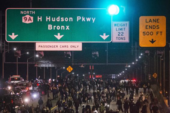 Protesters, demanding justice for the death of Eric Garner, disrupt traffic along the West Side Highway in Manhattan