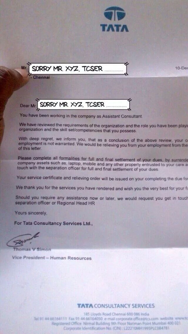 TCS employee Termination letter