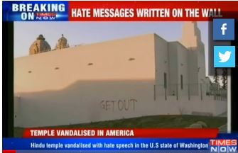 అమెరికా పశ్చిమ తీరంలోని వాషింగ్టన్ రాష్ట్రంలో (రాజధాని వాషింగ్టన్ డి.సి కాదు) సియాటిల్ మెట్రోపాలిటన్ ఏరియాలో ఈ దాడి జరిగింది. దాడి అంటే ధ్వంసం చేయడం, కొట్టడం, కాల్చడం లాంటివి ఏమీ జరగలేదు. ఆలయ గోడలపై స్వస్తిక్ గుర్తును స్ప్రే పెయింట్ చేసారు. పెద్ద అక్షరాలలో ‘Get Out’ అని స్ప్రే చేశారు. ఈ పని చేసింది ఎవరో ఇంకా గుర్తించలేదు. ఈ ఘటనను ఖండించేందుకు ఇండియాలో పలువురు నేతలు పోటీ పడ్డారు. అమెరికాలో పని చేసే ‘హిందు అమెరికన్ ఫౌండేషన్’ (హెచ్.ఎఎఫ్) సంస్ధ నేతలు ఘటనను ప్రముఖంగా ఖండించారు.