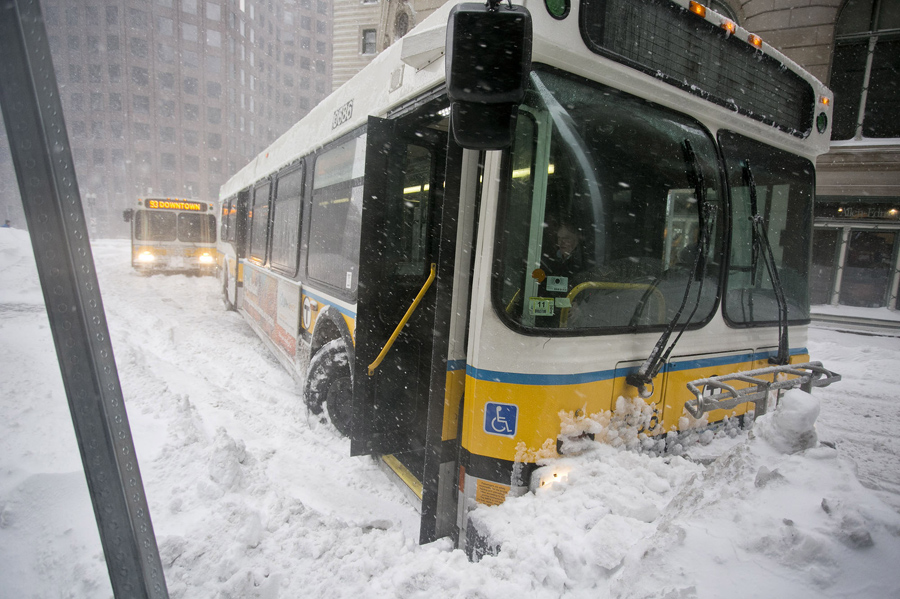 12 A bus struck in snow piles