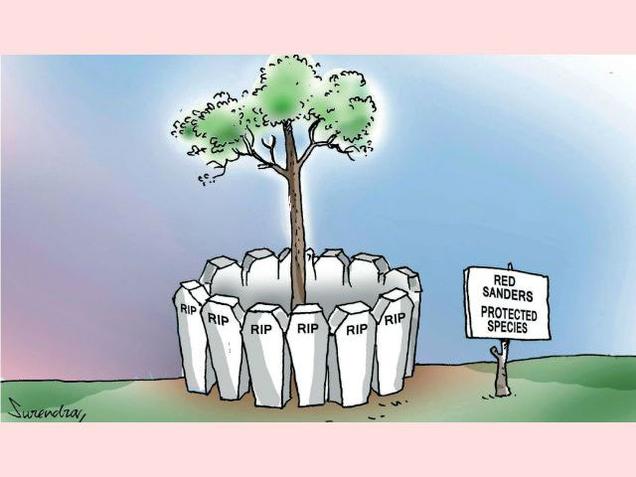 నిన్నటి ది హిందు సంపాదకీయం చెప్పినట్లుగా ఎర్ర చందనం చెట్లను నరికేవారూ, కోసేవారూ అందరూ కూలీలే. స్మగ్లర్లు ఎక్కువ కూలీ మొత్తాలను ఆశచూపితే కాసిన్ని డబ్బులు ఎక్కువ వస్తాయి కదాని ధైర్యం చేసి వచ్చే కూలీలు వాళ్ళు. అసలు నేరస్ధులు స్మగ్లర్లు గానీ కూలీలు కాదు గదా.