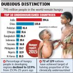 ప్రపంచవ్యాపితంగా పోషకాహార లోపంతో బాధపడుతున్నవారు 100 మంది ఉంటే అందులో 25 మంది భారత దేశంలోనే ఉన్నారు. ఐక్యరాజ్యసమితి ఆహార మరియు వ్యవసాయ సంస్ధ (UNFAO) నివేదిక తెలిపింది. ఈ రోజు వెలువడిన నివేదిక ప్రకారం ప్రపంచంలో పోషకాహార లోపంతో బాధపడుతున్నవారి సంఖ్య అత్యధికంగా ఇండియాలోనే ఉన్నారు. ఇండియా తర్వాత స్ధానంలో జి.డి.పిలో అమెరికాతో పోటీ పడుతున్న చైనా నిలవడం గమనార్హం. 21వ దశాబ్దం ఆరంభంలో ఇండియా, చైనాలు సాధించిన వేగవంతమైన జి.డి.పి వృద్ధి ఆ దేశాల్లో పేదలకు ఏమాత్రం ఉపయోగపడలేదని ఈ నివేదిక ద్వారా తెలుస్తోంది.