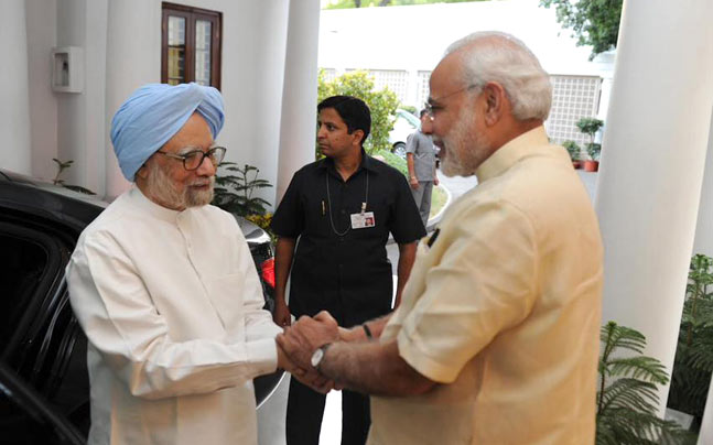 మాజీ ప్రధాని మన్మోహన్ సింగ్, ప్రధాని నరేంద్ర మోడిని కలిశారు. వారి సమావేశంలోనే అంశాలు ఏమిటో ఎవరికి తెలియదు. మాజీ ప్రధాని మాట్లాడి వెళ్ళాక ప్రధాని నరేంద్ర మోడిగారే స్వయంగా వారిద్దరు చేతులు కలిపిన ఫోటోను ట్విట్టర్ లో పోస్ట్ చేశారు. ఫోటోతో పాటు కొంత మేటర్ ఆయన రాశారు గానీ, అందులో వారి సమావేశంలోని అంశం ఏమిటో చెప్పలేదు.
