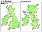 అందరిలాగే కార్టూనిస్టులూ బ్రెగ్జిట్ కు స్పందించారు. వారి వారి ప్రయోజనాలకు తగినట్లుగానే ఆయా పత్రికలు, కార్టూనిస్టులు స్పందించారు. బహుళజాతి కంపెనీల పోషణలోని పశ్చిమ పత్రికలు బ్రెగ్జిట్ ఓటును దూషిస్తూనో, ఎకసక్కెం చేస్తూనో కార్టూన్ లు ప్రచురించగా బ్రెగ్జిట్ సానుకూలుర స్పందన కాస్త వాస్తవాలకు దగ్గరగా తమ గీతల్లో స్పందించారు.