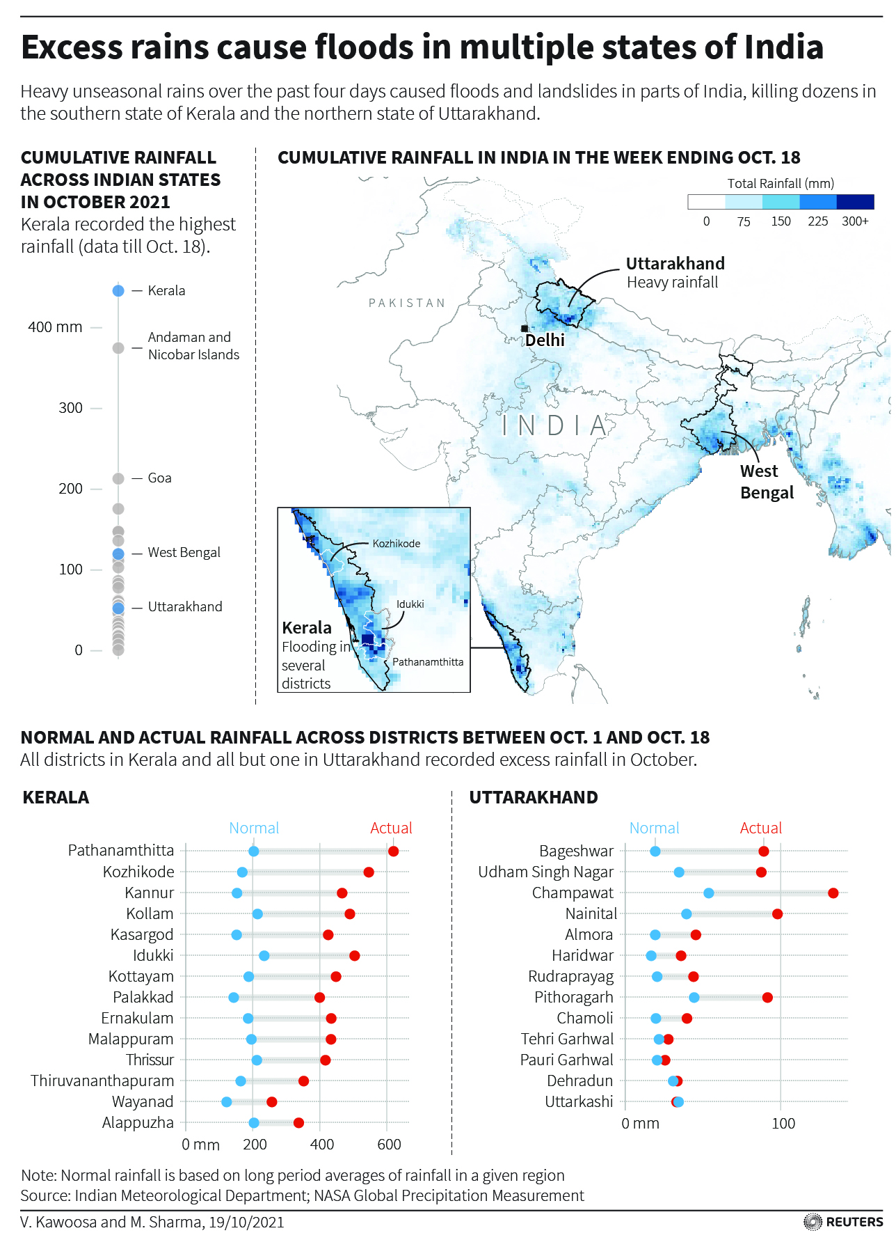 Excess rains in Kerala, Uttarakhand, WB