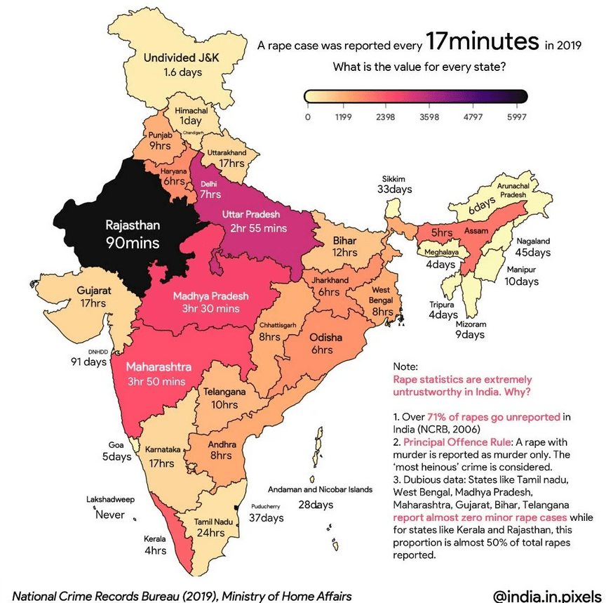ఒక్క ఆగస్టు 17, 18 తేదీలలో మాత్రమే ఎన్.డి.టి.వి అనే ఒక వార్తా పత్రిక దేశంలో వివిధ ప్రాంతాల్లో ఆడవాళ్లపై జరిగిన ఆరు అత్యాచారాల గురించి రిపోర్ట్ చేసింది.